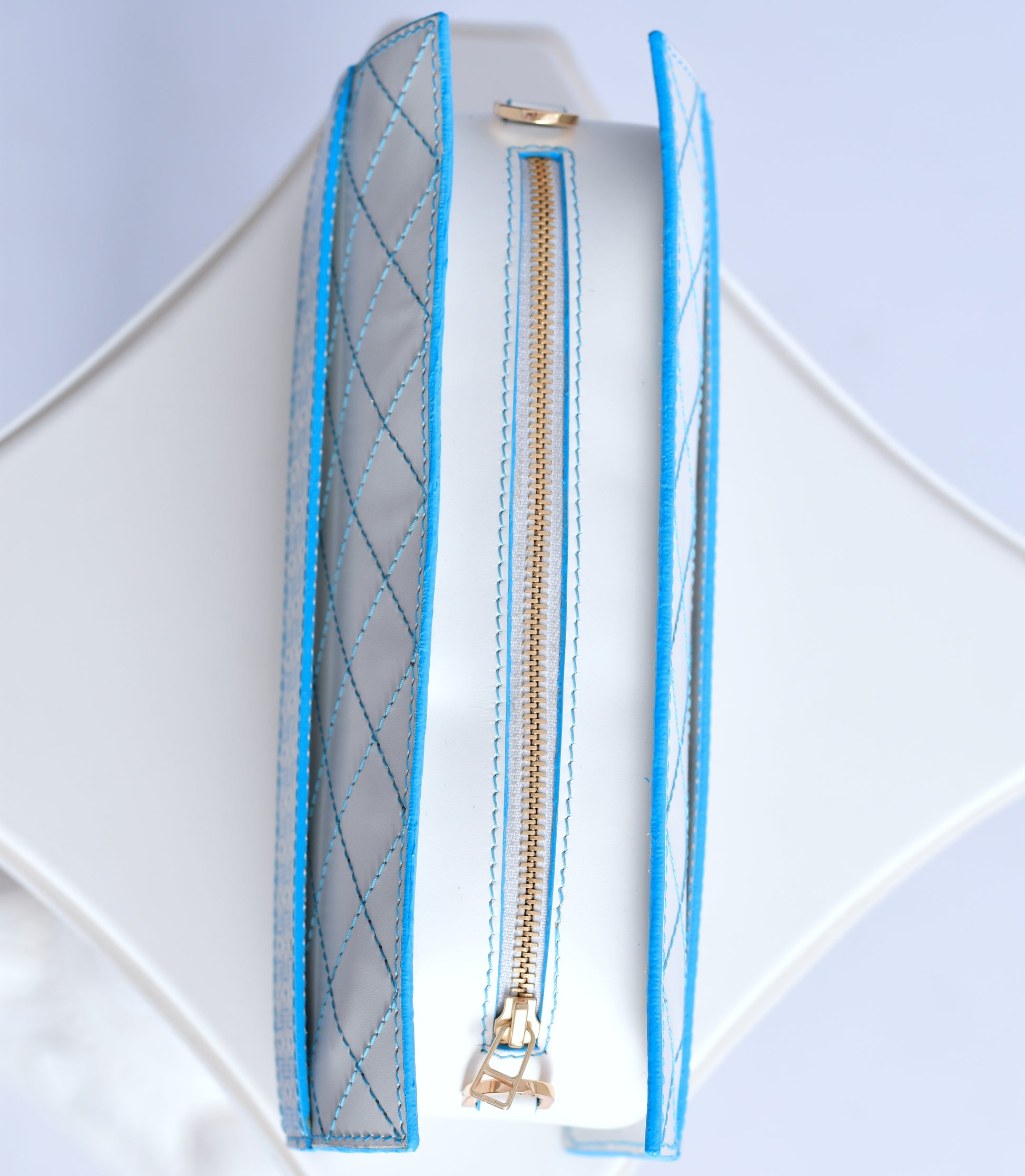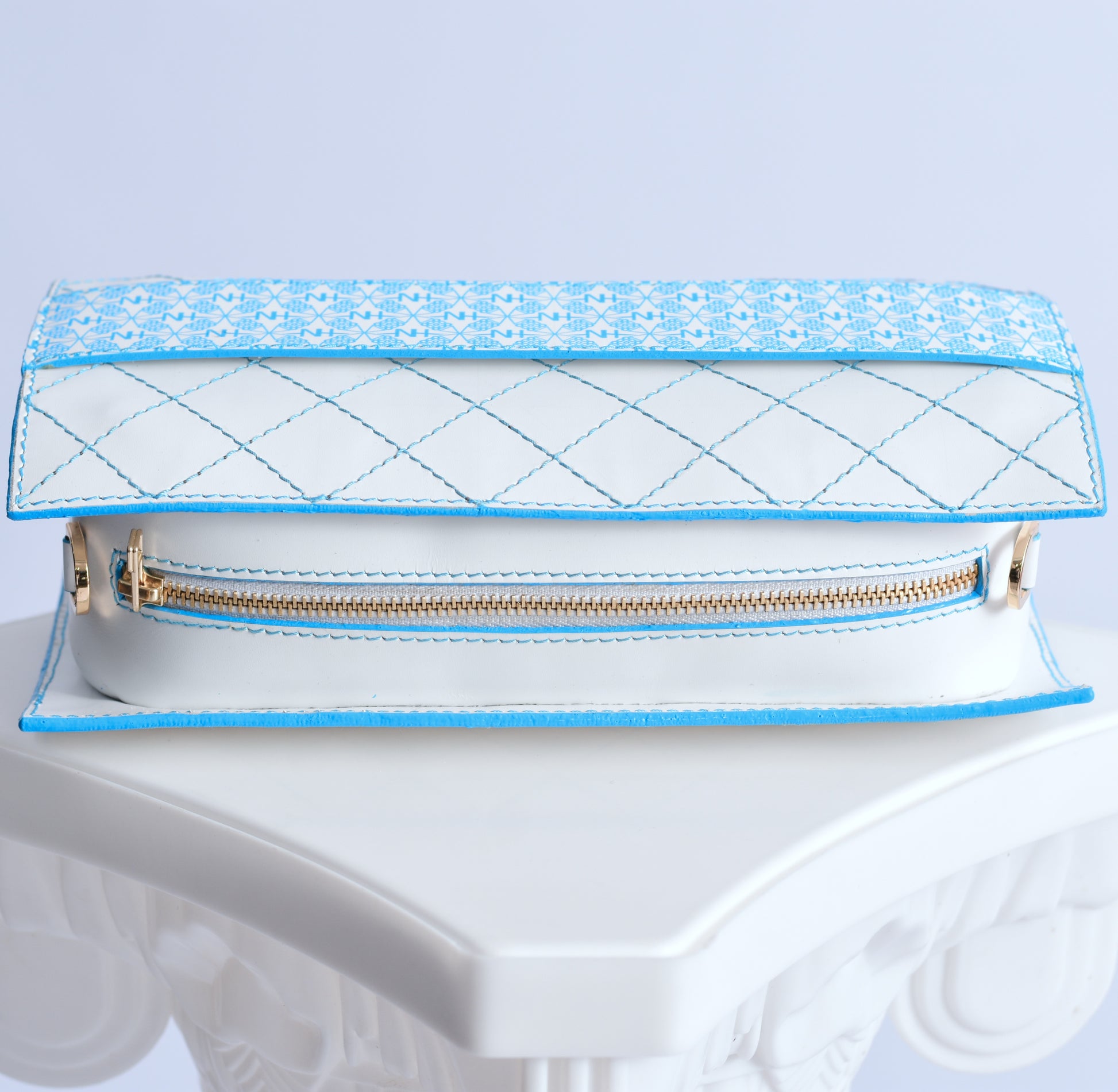 Inside, the craftsmanship continues with a pocket, leather card holder with a gold HN logo stamp, and a navy blue satin lining that enhances its refined character. Completed with a long detachable strap for multiple styling options, the PamPam Diamond captures the spirit of African sophistication — a timeless dialogue between culture, craftsmanship, and contemporary design.
